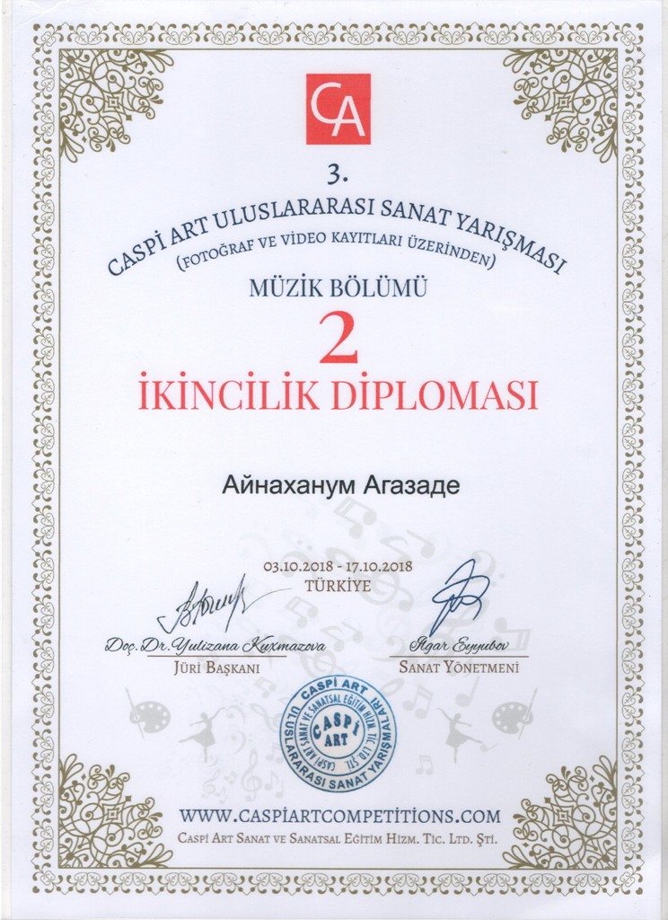 Müsabiqədə Mənsumzadə Fatimənin ifa etdiyi - K.V.Qlyukun “Flaminqo”, D.Kabalevskinin “Variasiyalar” əsərləri və Ağazadə Aynaxanımın ifa etdiyi - T.Quliyevin “Seva velosipedlə” və “Lay-lay”, K.Çerninin “Etüd” əsərləri münsiflər heyəti tərəfindən yüksək qiymətləndirilib.