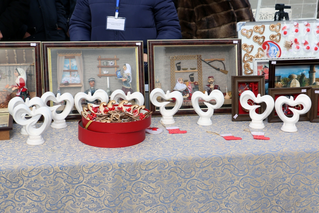 Tədbirdə rəssamlar və dekorativ tətbiqi sənət ustaları Ellada Həsənova, Günel Hüseynova, Cəmilə Hacınski, Nəsibə Şükürova, Zümrüd Məmmədova, Xuraman Səfərovanın əl işlərindən ibarət satış sərgisi və “Göyərçin abidəsi uşaqların gözü ilə” adlı rəsm müsabiqəsində iştirak edən şagirdlərin rəsmlərindən ibarət sərgi nümayiş olunub.