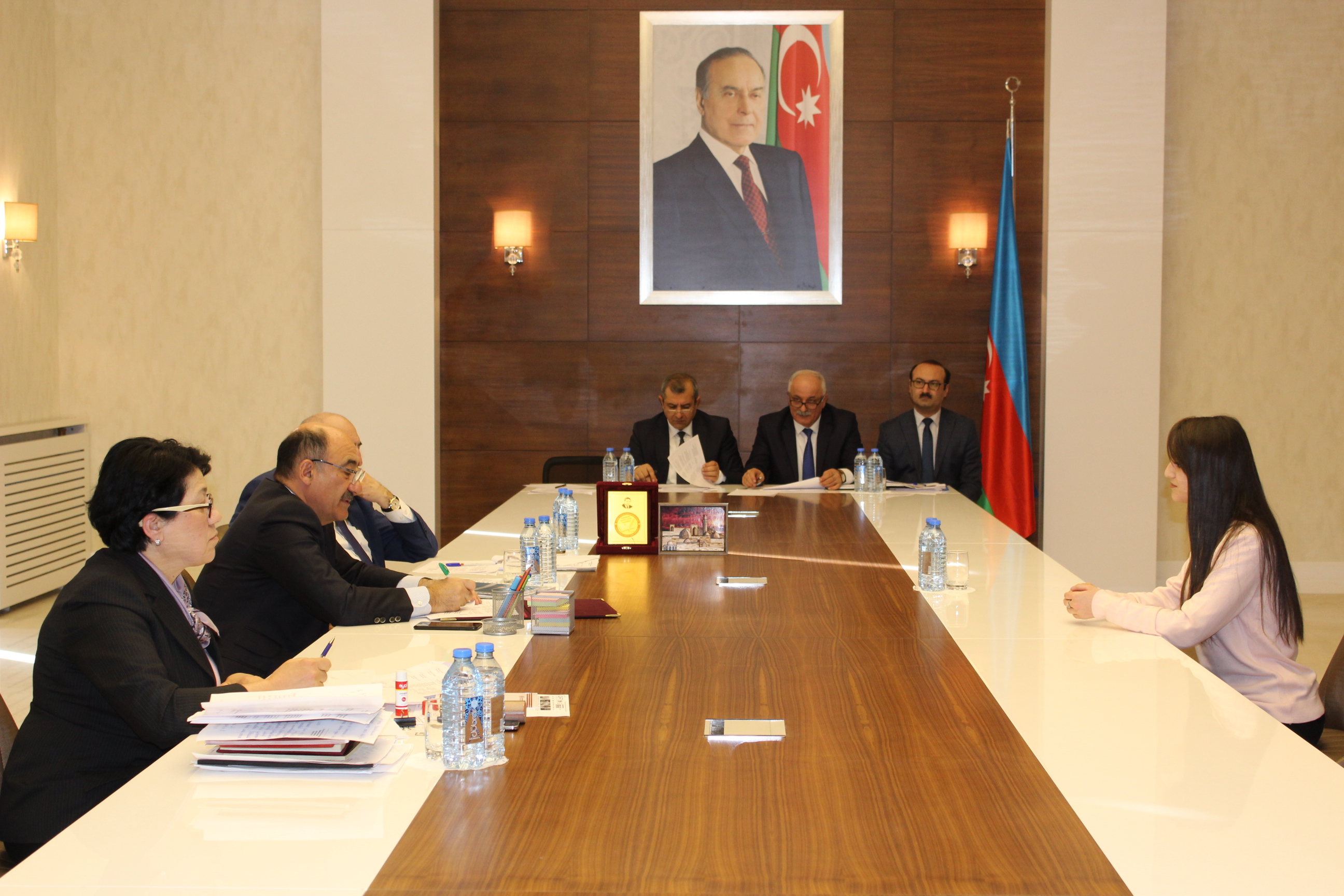 Qəbuldan öncə ümummilli lider Heydər Əliyevin abidəsi ziyarət olunub, abidə önünə tər çiçək dəstələri düzülüb.