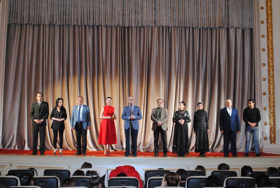 Sonra tamaşa zalında teatrın direktoru Mübariz Həmidov və teatrın kollektivi çıxış edərək bayram münasibətilə teatr camiəsini və tamaşaçıları təbrik edib. Cıxışlar zamanı mədəniyyət və incəsənət sahəsinə göstərilən dövlət qayğısından danışılıb, 50 il ərzində teatrın keçdiyi zəngin yaradıcılıq yolundan söhbət açılıb.
