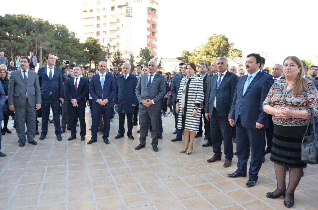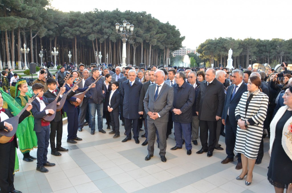 Heydər Əliyev Mərkəzinin qarşısındakı parkda təşkil olunan tədbirdə Abşeron Rayon İcra Hakimiyyətinin başçısı İradə Gülməmmədova, Mədəniyyət Nazirliyinin nümayəndələri, regional mədəniyyət idarələrinin rəisləri, mədəniyyət işçiləri və şəhər ictimaiyyətinin nümayəndələri iştirak edirdilər.