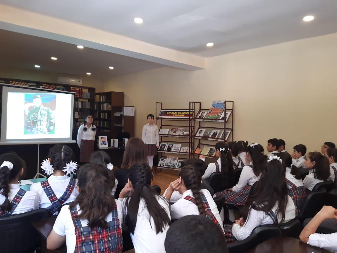 Əvvəlcə kitabxanaçı Səadət Allahverdiyeva adı çəkilən şəhəidlərimizin həyatı və keçdiyi qəhrəmanlıqla dolu döyüş yolu haqqında oxuculara geniş məlumat verib.