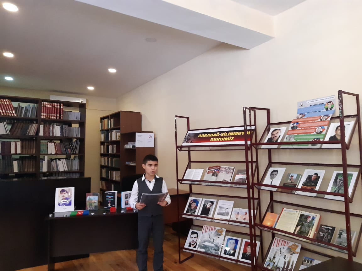 Sonra kitabxananın oxucularının ifasında şəhidlərə, vətənə həsr olunmuş şeirlərdən nümunələr dinlənilib, mövzu ilə bağlı videoçarx nümayiş olunub.